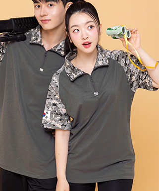 강철캠프 그레이 티셔츠 (오른소매 인쇄) (BT-399)