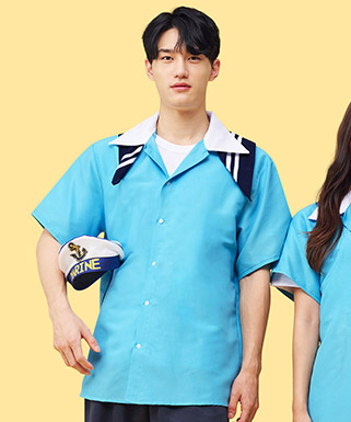 스카이블루 마린 반팔 남방 (BT-112-4) (왼가슴 인쇄)