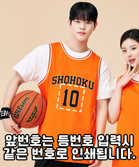 오렌지 농구나시 상의 (BT-1008) (앞전면 슬램덩크 인쇄)